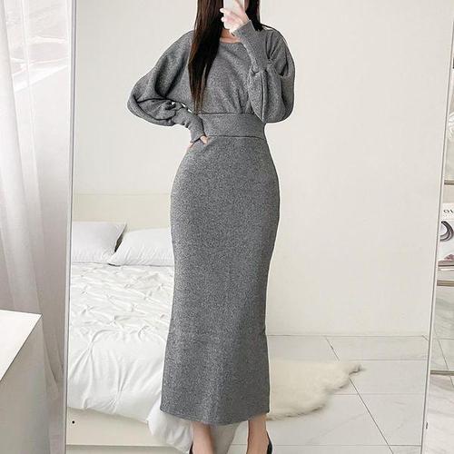 [신상오픈런]모양기 스프링 스웨터 긴 원피스 머메이드 여성