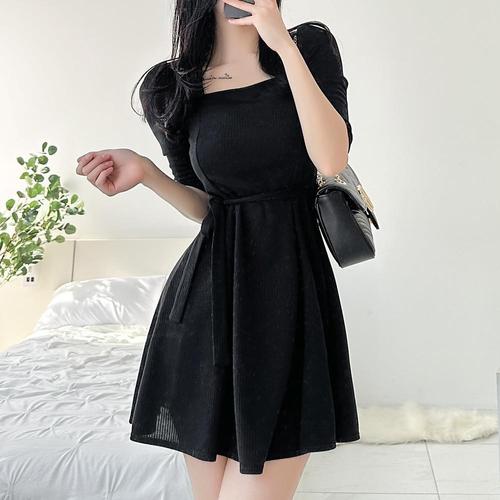 |KCO48A8|카루다 하객룩 스퀘어넥 스프링 플레어 여성 미니원피스