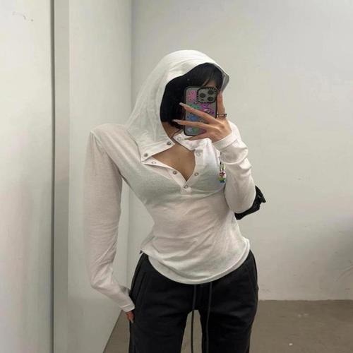 [하젤]슬럽 슬림핏 시스루 후드 티셔츠_S4531