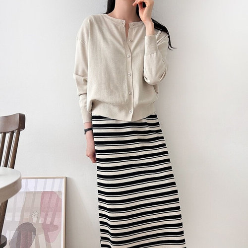 플러리싱 / 단가라 나시 롱원피스 라운드넥 니트 가디건 set 플
