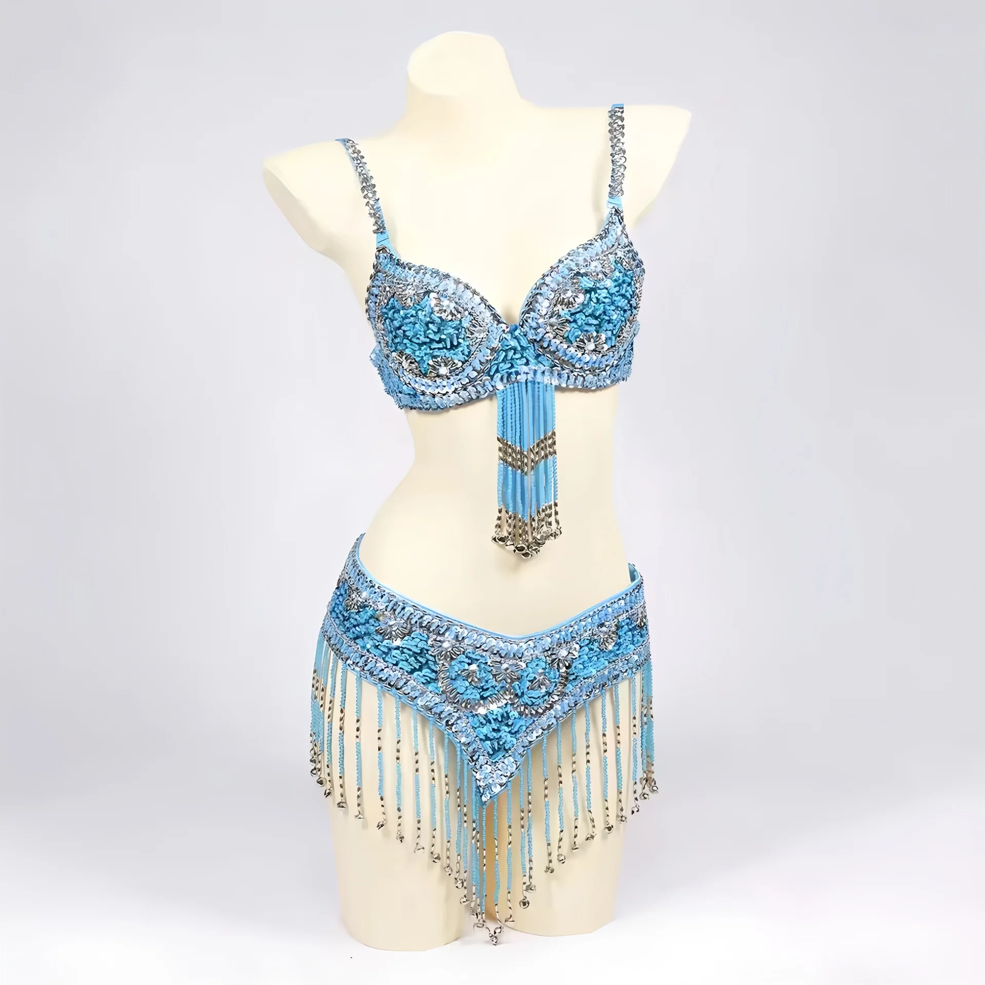 메탈릭 사운드 Tinkle 여성 오리엔탈 스타일 스팽글 페르시 브래지어와 벨트 2pcs 라인 석 벨 밸리 댄스 의상 벨 세트