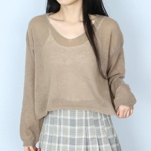 [파라노말샵]5색 무지 브이넥 시스루 크롭 니트티 (파라노말샵)