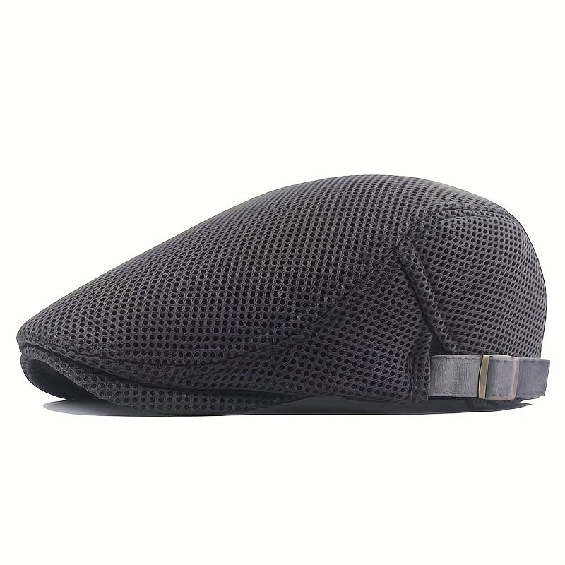 TEMU 솔리드 컬러 패셔너블 홀아웃 캡 - 통기성 메쉬 베레모, 레트로 영국 스타일의 남성용 아방가르드 모자