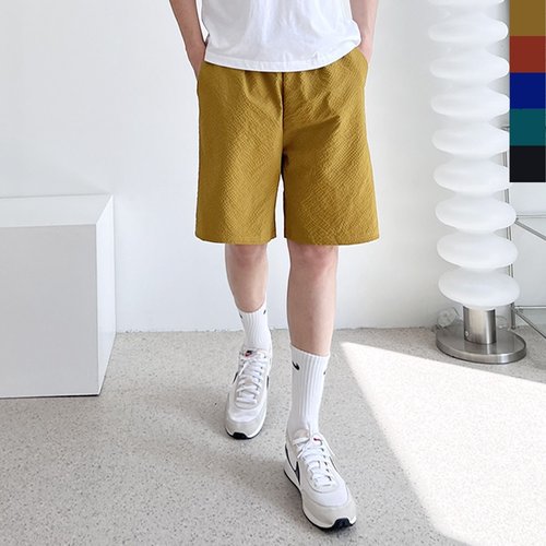 남자 시어서커 밴딩 엠보싱 심플 5부 반바지 SD-PTH-SSD240503M