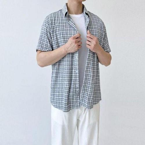 [셀러허브_여성트랜드패션]시어서커 체크 SS1021남성 여름 반팔 남성 셔츠 남방
