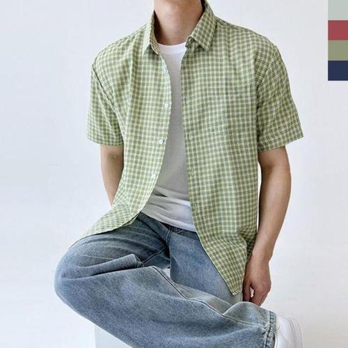 [셀러허브_여성트랜드패션]남방 체크 반팔 시어서커 셔츠 SS1022남자 썸머