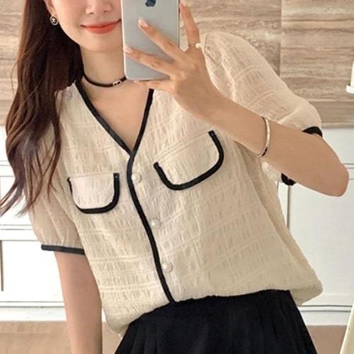 [엄지척]여름 시원한 브이넥 라인배색 예쁜 여성 반팔 가디건_19800531_667501