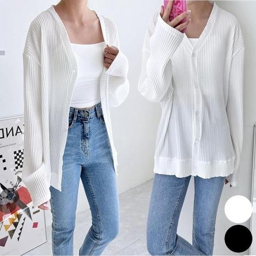 [엄지척]여자 플리츠 주름 V넥 가디건 여름 시원한 소재 상의_19805425_667501