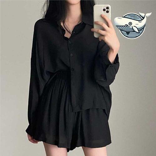 [에이치플러스몰]루즈핏 시원한 여름 셔츠 팬츠 세트 실루엣