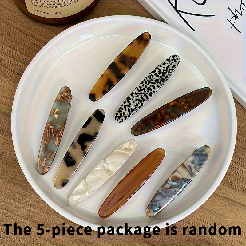 TEMU 5개 혼합 우아한 다기능 헤어 클립 세트 - 거북이 껍질, 프린트, 대리석 패턴, 메탈릭 컬러가 특징이며 엣지 컨트롤, 캐주얼 및 포멀 스타일에 적합한 헤어 액세서리, 패션 디자인, 천연 성분 아이콘