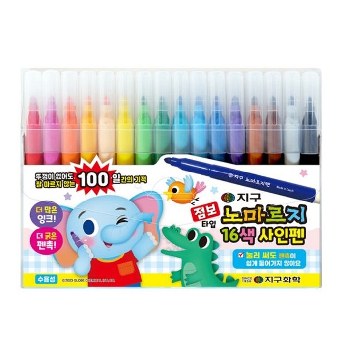 지구화학 노마르지 사인펜 16색 마르지않는 싸인펜 지구