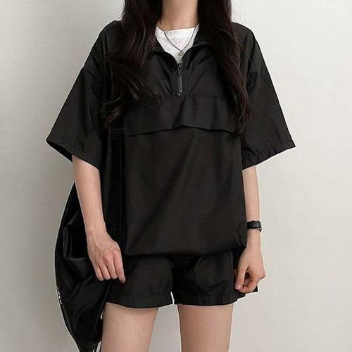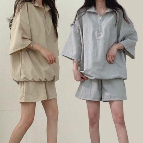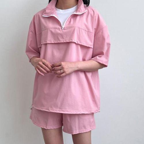 [에이치플러스몰]반집업 베이직 아노락 반팔 반바지 올데이 셋업 여성