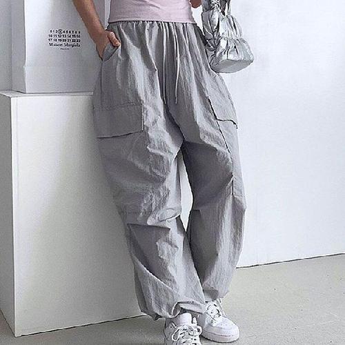 아노락바지 2종 밴딩 와이드 스트링 카고 봄 가을 여성 슬레이 리벳 파라슈트 팬츠