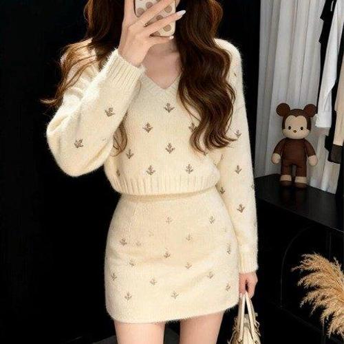 [아리엘스타일]겨울데이트룩 러블리룩 아이보리니트세트 오에브니트