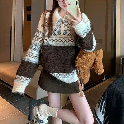 [아리엘스타일]노르딕니트 데이트룩 겨울니트 몽즐레반집업니트