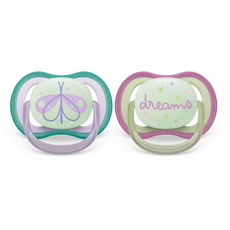 필립스아벤트 울트라 에어 야광 노리개 젖꼭지 2종 세트, 0~6개월, 나비 + 드림, 1세트