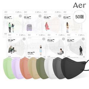 [aer] 아에르 피크 라이트핏 KF80 새부리형 컬러 마스크 50매 [대형 / 중형 / 소형]