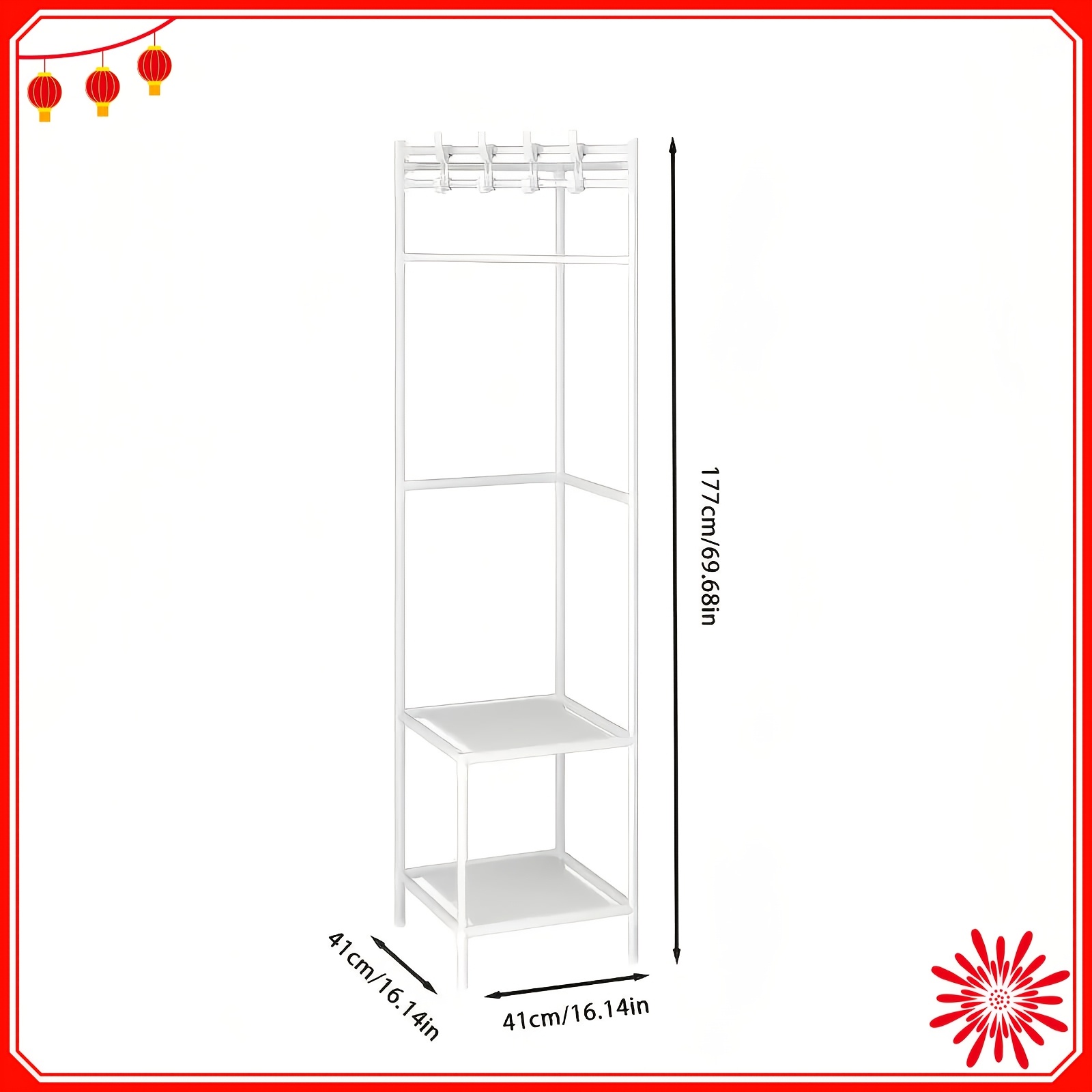 TEMU 흰색/검은색 메탈 코너 보호 랙 (후크 포함) - 침실 및 거실에 적합한 세련된 2단 수납, 페인트 표면 및 독립적인 디자인, 재킷, 모자 및 액세서리에 적합, 방 꾸미기 향상.