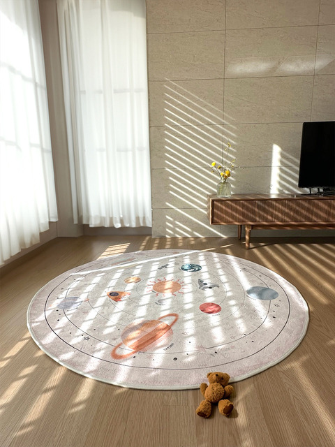 [핸즈] 국산 사계절 아이방 원형러그 워셔블 놀이방 매트 우주 극세사 카페트