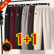 (다리 길어보이는) 85kg까지 1+1 빅사이즈 여성 모직 기모 도톰한 배기 팬츠 가을 겨울 편한 패치 디자인 밴딩 중년여성 엄마옷 보온 바람막이 우아한 세련된 일자 9부 바지