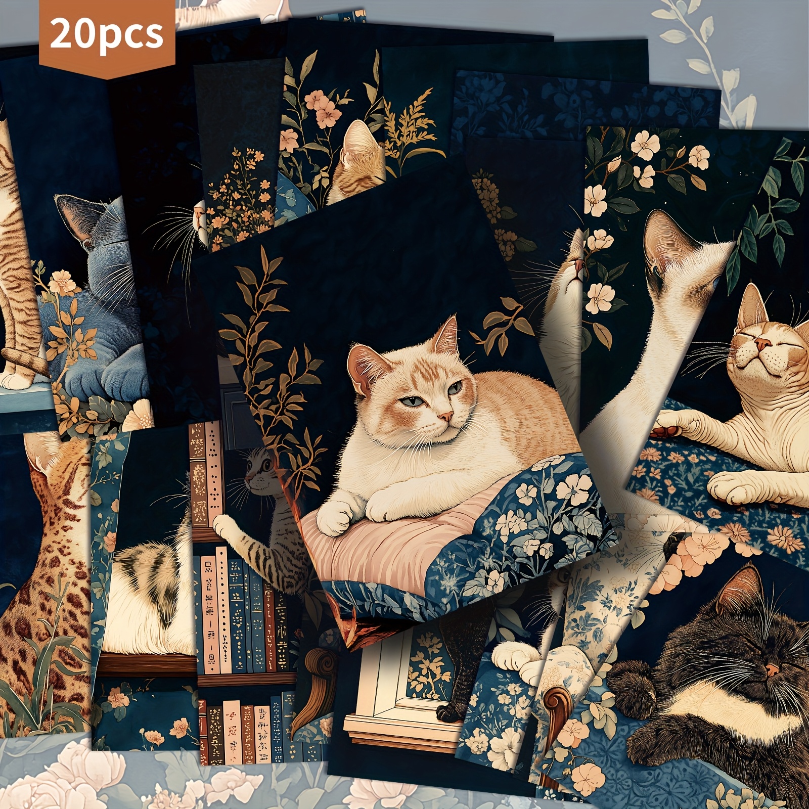 TEMU 20팩 ASSTSS 빈티지 고양이 엽서 - 4x6인치 인어 핀업 일러스트레이션, 꽃 & 책 모티프가 있는 클래식한 자크 저널용 종이, 스크랩북을 위한 수집 가능한 장식 카드, 기념일 선물, 공예 액세서리, 예술적 품질의 디테일된 일러스트레이션, 다이어리 보관용품