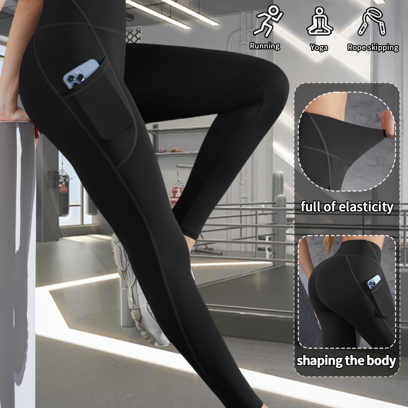 TEMU 휴대폰 포켓이 있는 야외 스포츠용 요가 레깅스