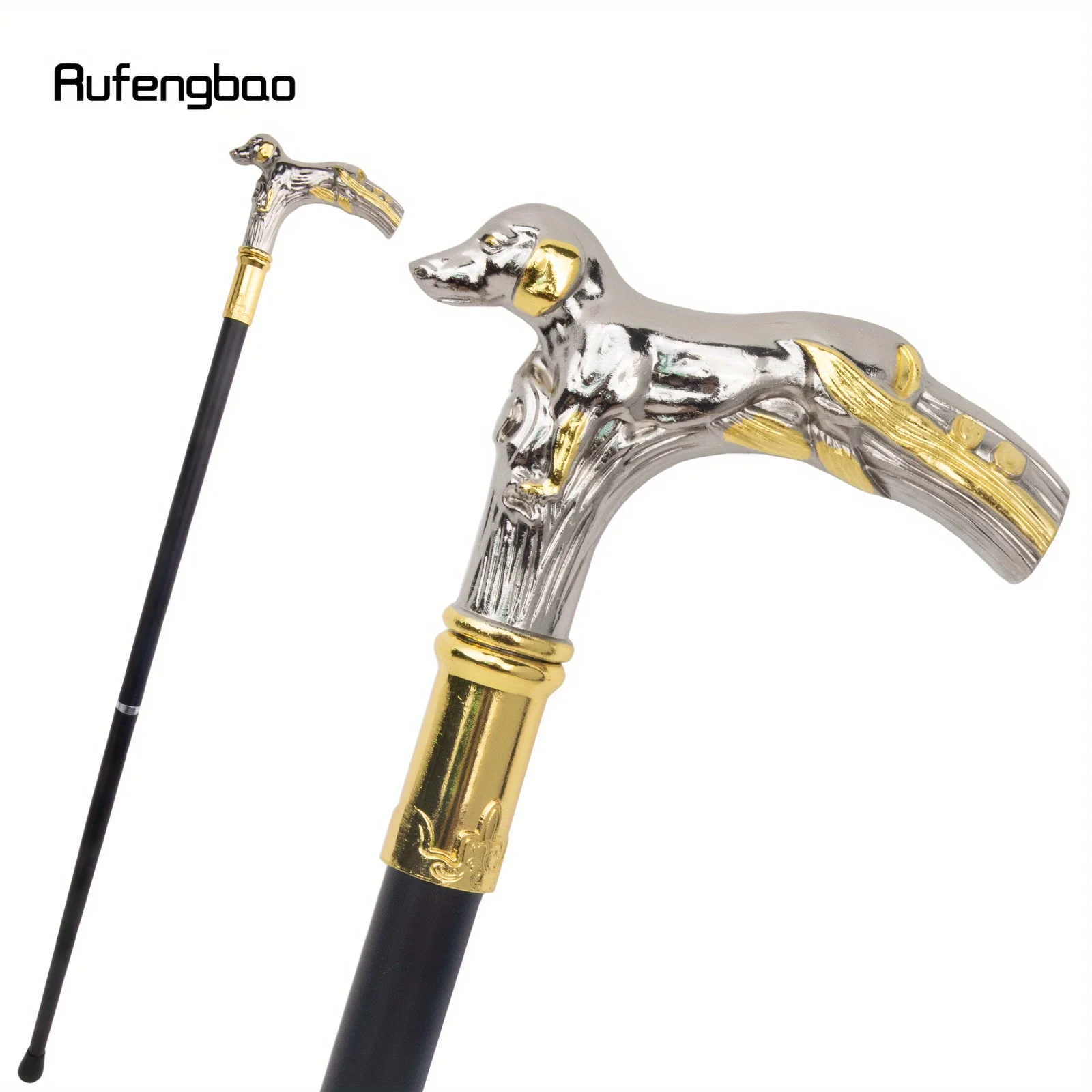 골든 화이트 도그 럭셔리 패턴 워킹 스틱 파티 패션 우아한 워킹 스틱 지팡이 손잡이 크로시어 공연 무대 지팡이 88cm