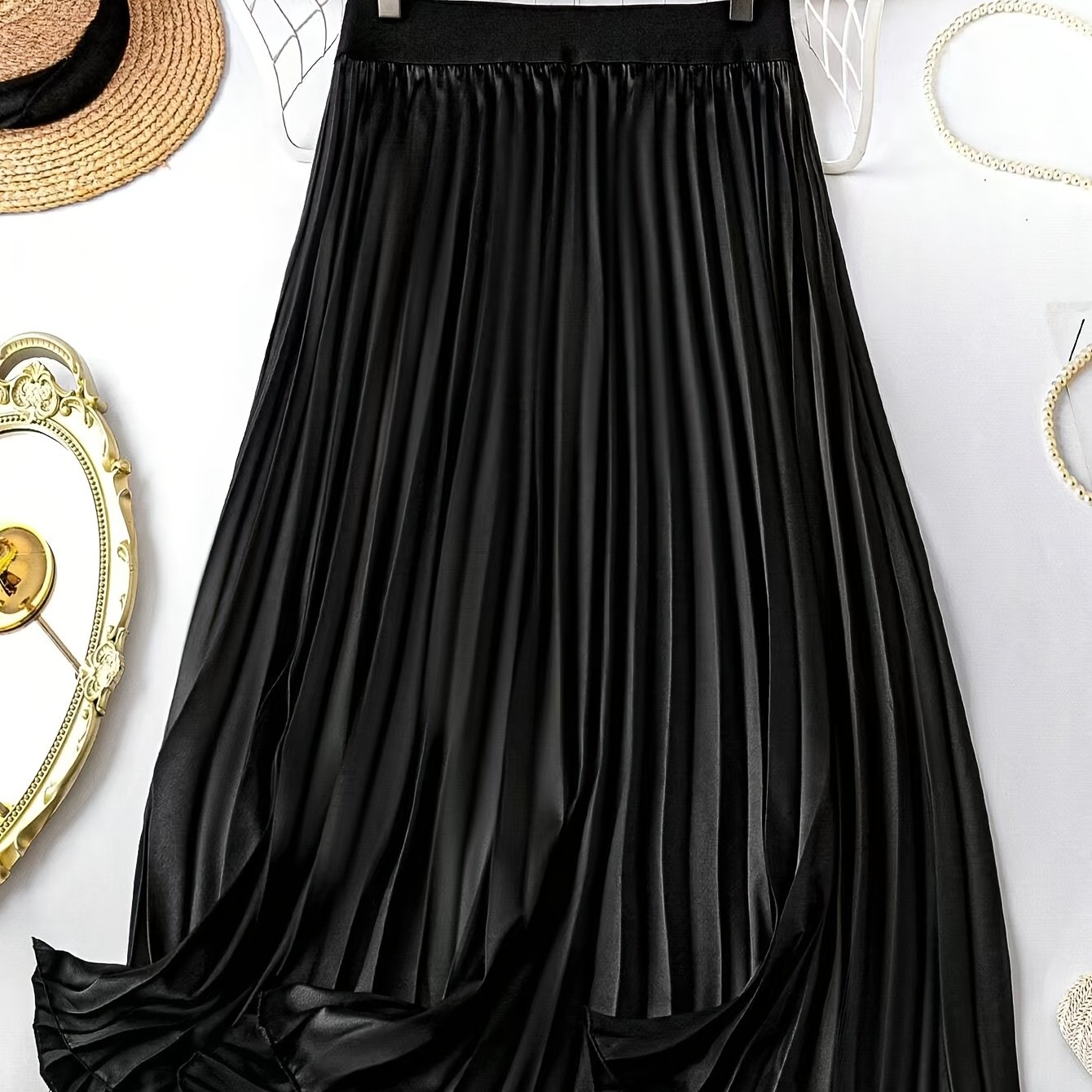 TEMU 솔리드 컬러 플리츠 스커트
