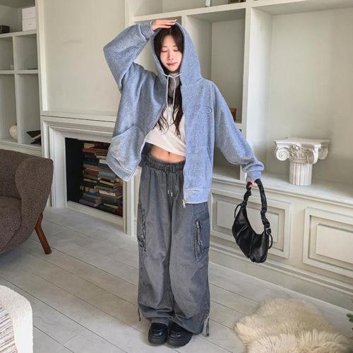 [옷자락]여자 캐주얼 자수 양기모 후드 오버핏 집업 점퍼