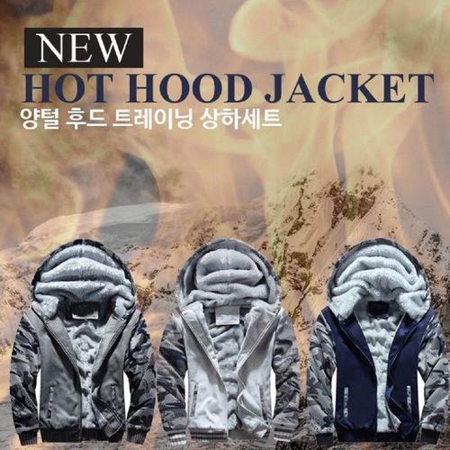 [에이치플러스몰]잠바 양털 점퍼 상하세트 기모후드 트레이닝 남