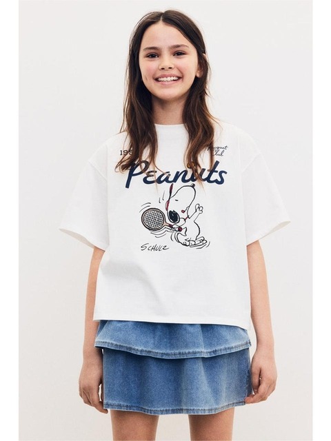 [에이치엔엠] 프린트 코튼 티셔츠 화이트/스누피 1263226036