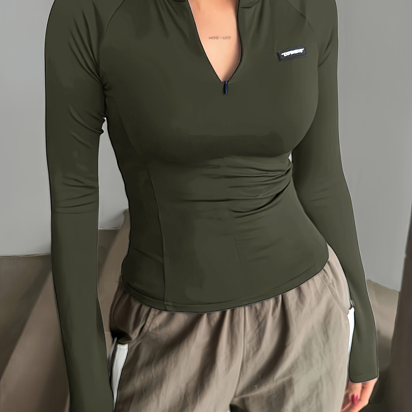 TEMU 여성용 한국 스타일 시크 가을 유니크 디자인 라운드넥 허리 집어넣는 슬림핏 긴팔 크롭 풀오버 스웨트셔츠