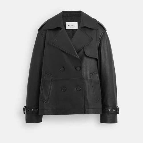 [해외배송] 코치 여성 Mini Leather 트렌치코트 Coat CL357 BLK
