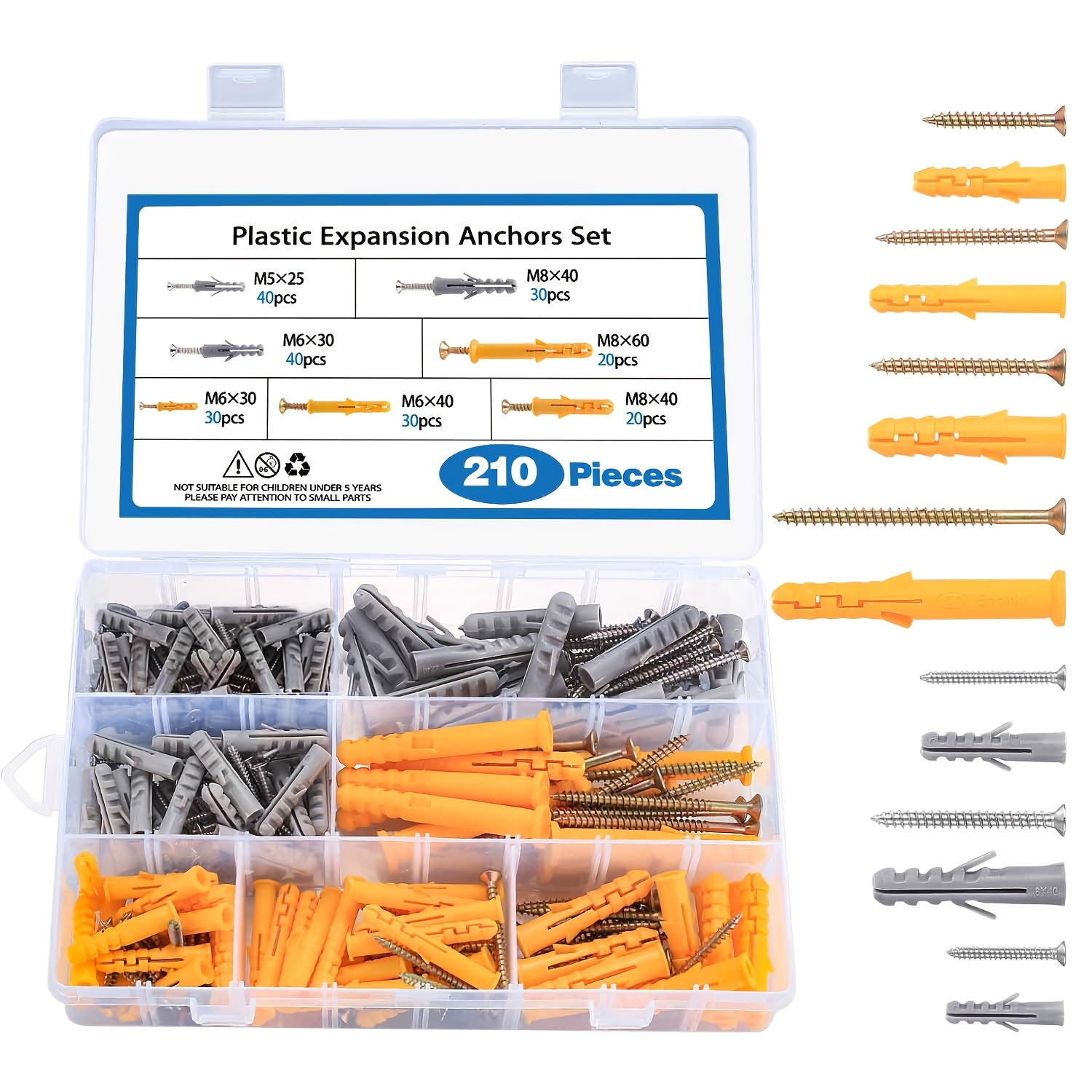 TEMU 튼튼한 노란색 플라스틱 확장 앵커 키트, 다양한 크기 (M6×30, M8×40, M6×60, M8×60, M10×80)로 제공