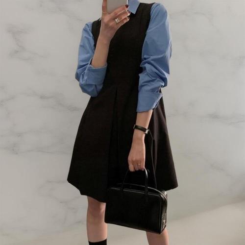 [다잇템]여자 미니멀리즘 롱 에이라인 쁘띠 원피스