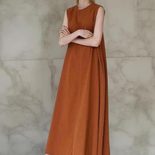 [다잇템]여성 원컬러 슬리브리스 에이라인 롱 드레스