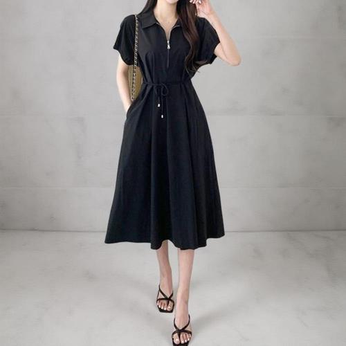 [다잇템]여성 시보리 베이직 롱 에이라인 집업 드레스