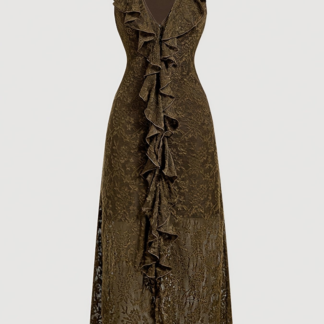 TEMU 여성용 엘레강스 레이스 패치워크 러플 브이넥 중종아리 원피스 올드머니 스타일 여성 가을용
