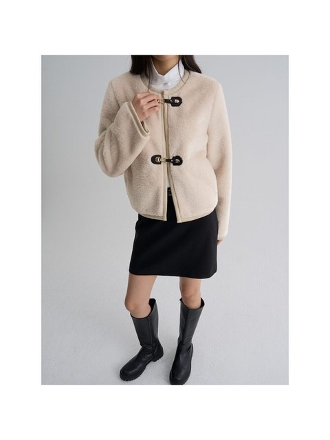 [에잇세컨즈] 버클 라운드넥 시어링 재킷아이보리 (325Y3VLY20)
