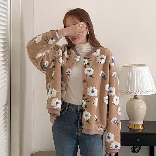 [다잇템_패션]여자 할매니얼 꽃무늬 몽글 엠보싱 가디건