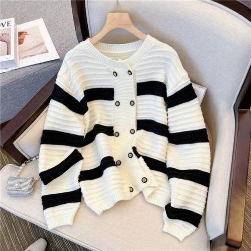 [신상오픈런]시스루 엠보싱 스트라이프 봄니트 투톤가디건 시보리