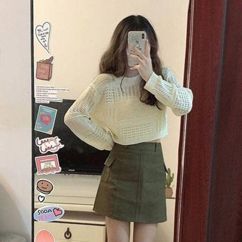 니트 크롭 여름 그물 긴팔 WFL6IL8