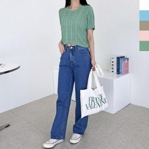 여름 골지 크롭 슬림 꼬임 니트 데일리룩 티셔 WFL6IP4