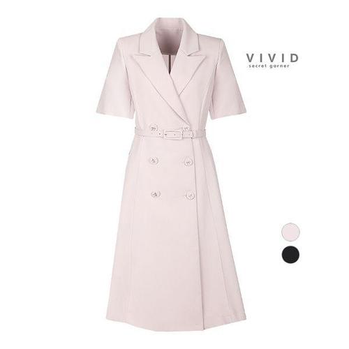 [비비드시크릿가너]여성 여름 더블단추 벨티드 정장 원피스