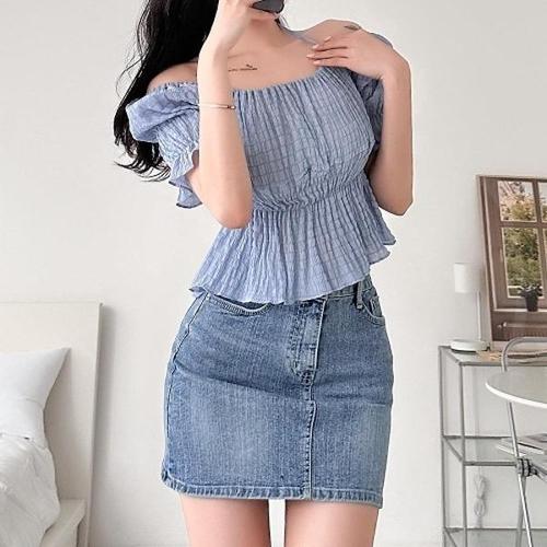포인보 튤립 셔링 슬림 미니 스커트 AC0374