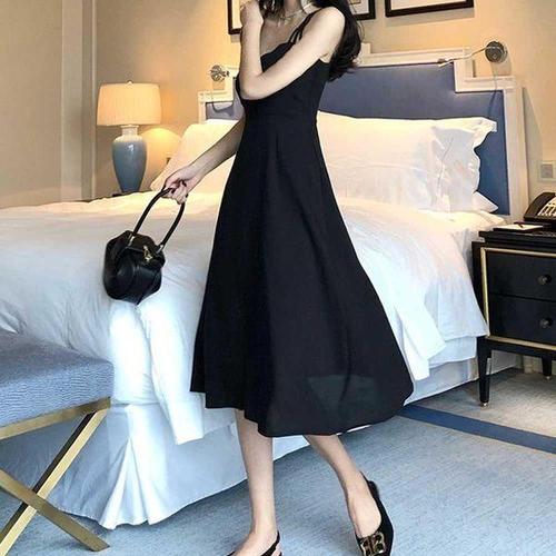 [에이치플러스몰]여자 여름 데이트 룩 나시 블랙 롱 원피스 드레스