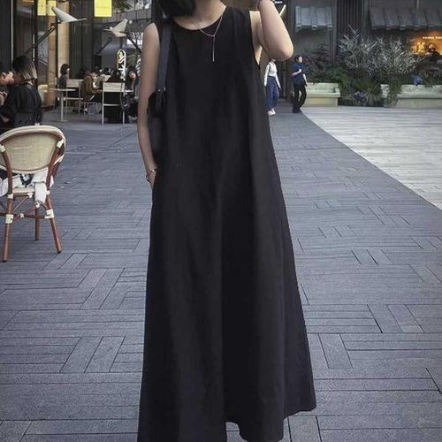 [에이치플러스몰]시원한 민소매 여성 롱원피스 블랙 A라인 여름 원피스