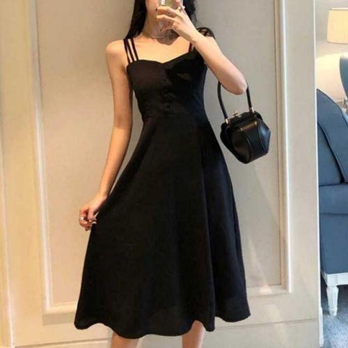 [에이치플러스몰]파티룩 허리주름 데일리 블랙 여름 클래식 원피스 출