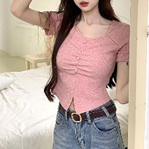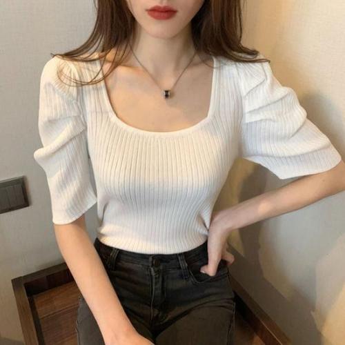 [에이치플러스몰]스퀘어넥 여성티셔츠 여름 퍼프소매 반팔 맨투맨