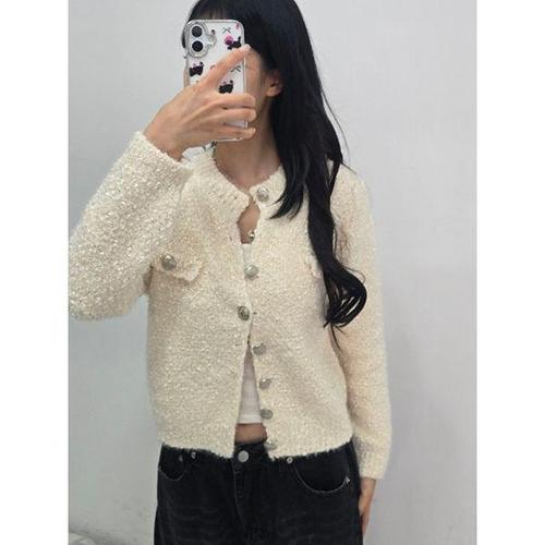 [샵앤]여성 라운드 단추오픈 세미크롭 긴팔 블링 부클 가디건 SIU-WCD-4944-아이보리